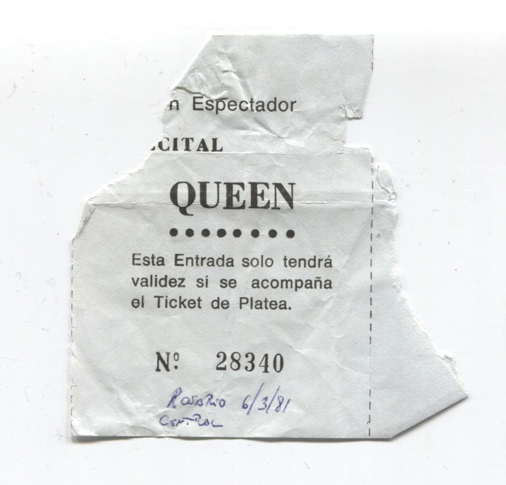 Es extraño pensar que uno fue testigo de un hecho histórico casi sin darse cuenta. No solo porque vi en vivo tocar aquella canción sin tiempo, sino porque aún hoy muchos se sorprenden cuando cuento que estuve allí aquel 6 de marzo de 1981. “Con puntualidad inglesa, ¡Queen!”, dijo el presentador, palabras más, palabras menos, ante una multitud que deliraba. Eran las 22.30 como marcaba el programita de mano que acompaña este texto y Freddie Mercury, Brian May, John Deacon y Roger Taylor pisaban el escenario instalado en el Gigante de Arroyito. No tengo en la cabeza el detalle de la lista de temas ni me interesa tanto saberlo, pero hay algo que es más fuerte que recordar si tocaron tal canción o no , o si Somebody to love Freddie la hizo en cueros o con la remera de Flash Gordon. Lo que queda latiendo es que aquella noche la viví con un disfrute único y con sabor a revancha. Porque era la primera vez que a un grupo de rock inglés, que venía escuchando y atesorando en los viejos vinilos, podía verlo en vivo y en directo, sin la necesidad de viajar a Buenos Aires, sino apenas con un colectivo que me llevaba desde mi casa natal de calle Iriondo 1851 hasta Génova y Cordiviola.